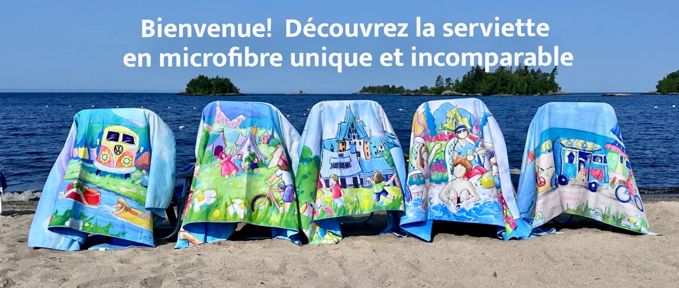 Ici, vous entrez dans mon univers. Chaque serviette est une œuvre originale, portant une image née de mon regard. À travers elles, je célèbre le Québec dans toute sa beauté. Lucie Lapointe, artiste peintre